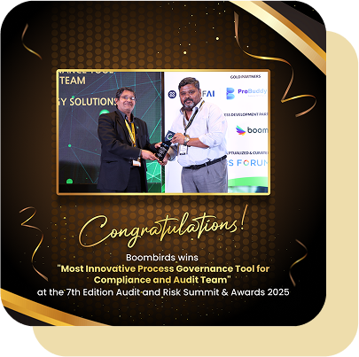 Proud to share that Boombirds B2B SaaS platform has been awarded the “Most Innovative Process Governance Tool for Compliance and Audit Team” at the 7th Edition of the Audit and Risk Summit & Awards 2025, held at ITC Maratha, Mumbai.